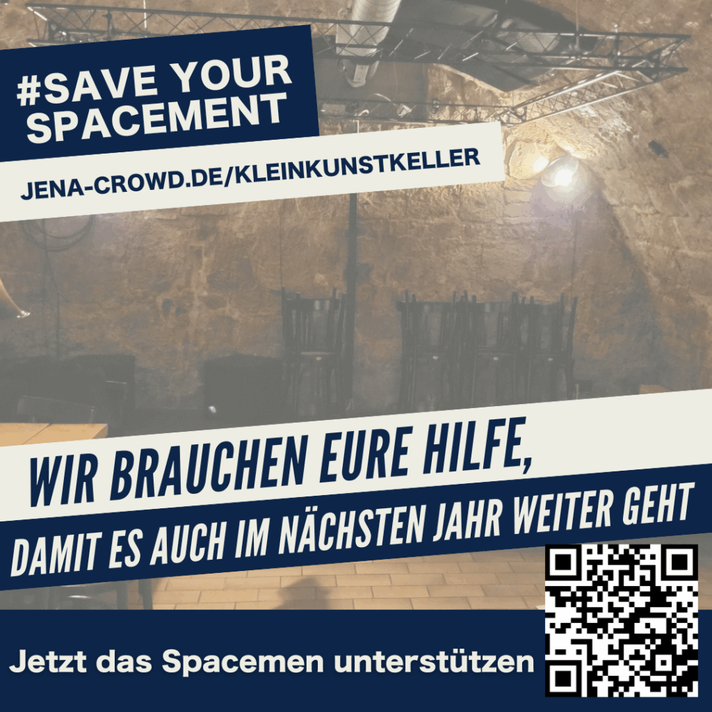 Das Spacement, Jenas einzige freie Kleinkunstbühne, steht vor dem Aus! Ohne euren finanziellen Support können wir diesen wunderbaren Raum für Musik, Theater, Lesungen, Comedy und kreative Experimente nicht weiterführen! Wir haben mit viel Herzblut einen neuen Kulturort geschaffen und ehrenamtlich bereits viel geleistet. Doch bevor wir richtig loslegen konnten, steht das Spacement schon wieder auf der Kippe: Eine hohe Ablösesumme, laufende Mietkosten und notwendige technische Ausstattung überfordern unsere ehrenamtlich getragene Struktur und machen es unmöglich, das Spacement im nächsten Jahr ohne finanzielle Unterstützung weiter zu betreiben. Das darf nicht passieren!
