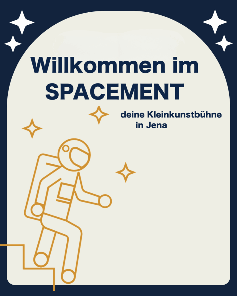 Wir sind dein neuer Kleinkunstkeller in Jena. Ein offener Kulturraum, in dem Musik, Comedy, Lesungen, Theater, Urban Arts und vieles mehr aufeinandertreffen. Hier entsteht Raum für deine Ideen: Ob du als Künstler*in auftreten, als Projekt deine Idee umsetzten oder einfach nur in entspannter Atmosphäre neue Inspiration tanken möchtest. Im Spacement bist du richtig. Unser Ziel ist es, Barrieren abzubauen, Vernetzung zu fördern und gemeinsam mit dir ein lebendiges Programm auf die Beine zu stellen.